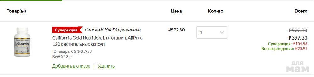 3. California Gold Nutrition, L-глютамин, AjiPure, 120 растительных капсул -20% https://iherb.co/G7ygL4K