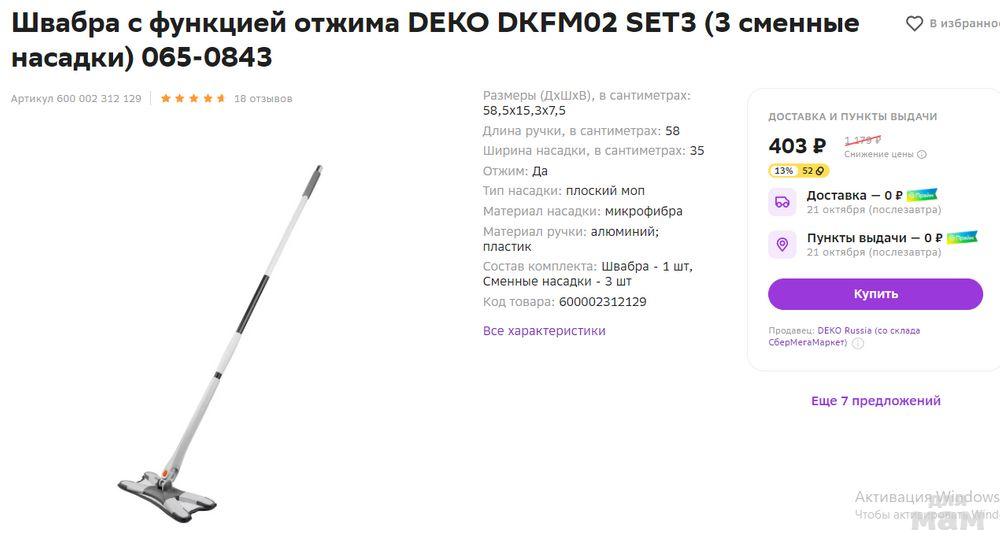 Швабра с функцией отжима DEKO DKFM02 SET3 https://fas.st/H6gX4