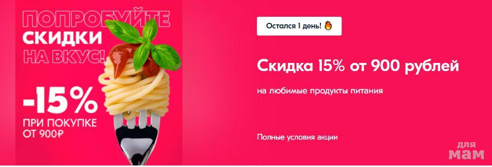 Продукты питания. Скидка 15% от 900 рублей https://vk.cc/c6ZlXm