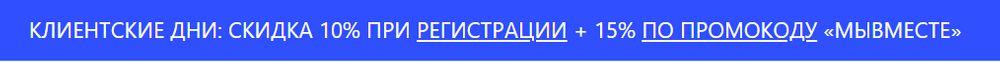 КЛИЕНТСКИЕ ДНИ: СКИДКА 10% ПРИ РЕГИСТРАЦИИ + 15% ПО ПРОМОКОДУ «МЫВМЕСТЕ» https://vk.cc/78Nald
