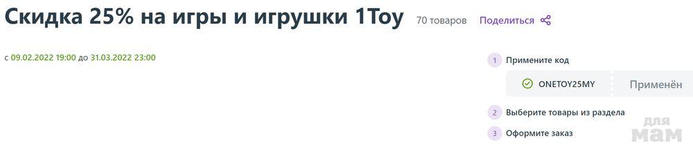 Скидка 25% на игры и игрушки 1Toy https://vk.cc/cbmH1G