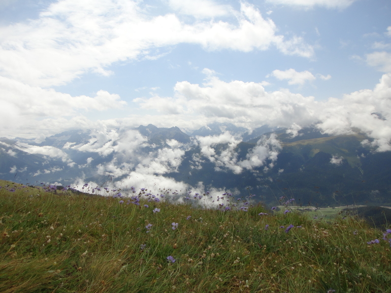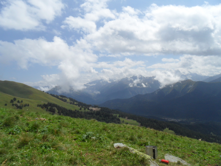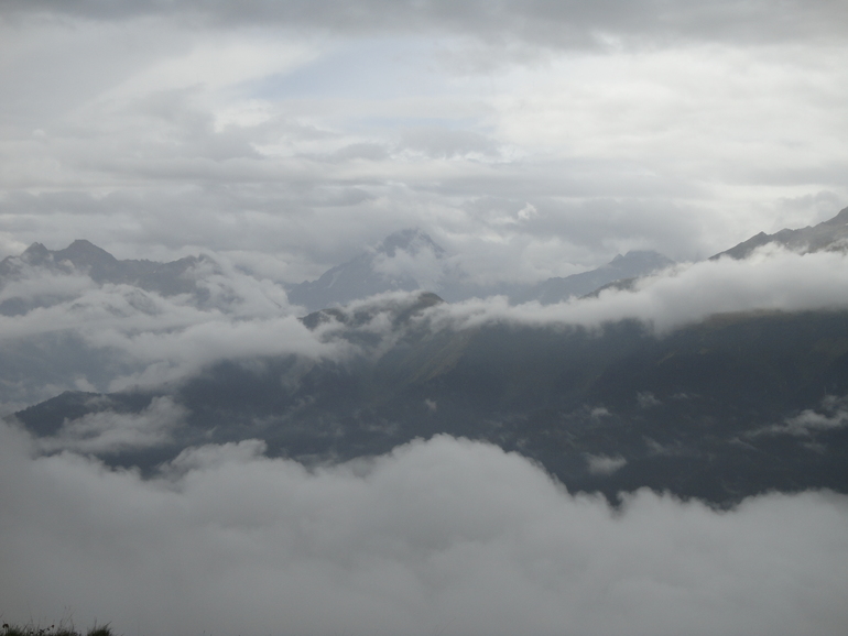 На следующий день утром лил дождь. Видете посередине большую гору? Это София. Высота 3640м (вторая по высоте в Архызе после г. Пшиш). Она то и собрала вокруг себя грозовой фронт))