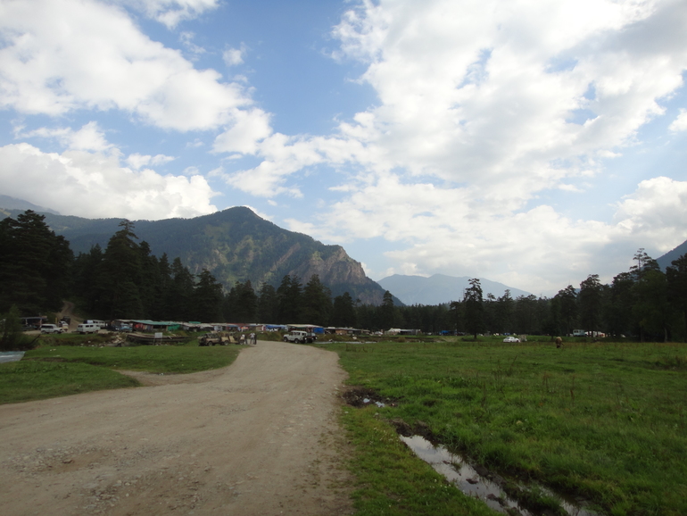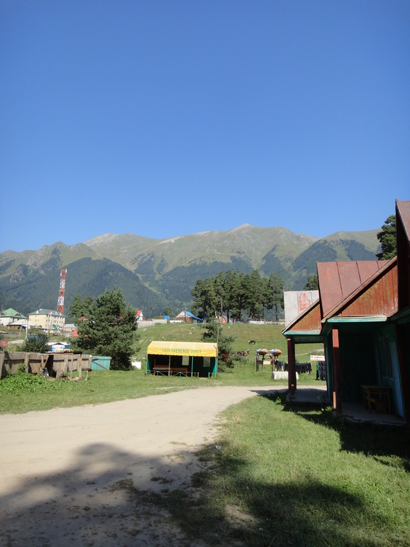 В этом месте стоит большой палаточный лагерь. Здесь многие туристы заканчивают свои маршруты и становятся на отдых. На поляне работает большой рынок. Можно нанять машину для поездок по району. Также здесь расположен мемориал ВОВ.