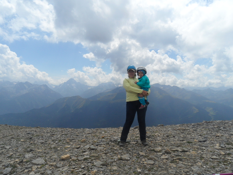 На следующий день на перевал пошли я, муж и Саша на мне. На папе он ехать наотрез отказался. Пристроили Сашку за спину и вперед.