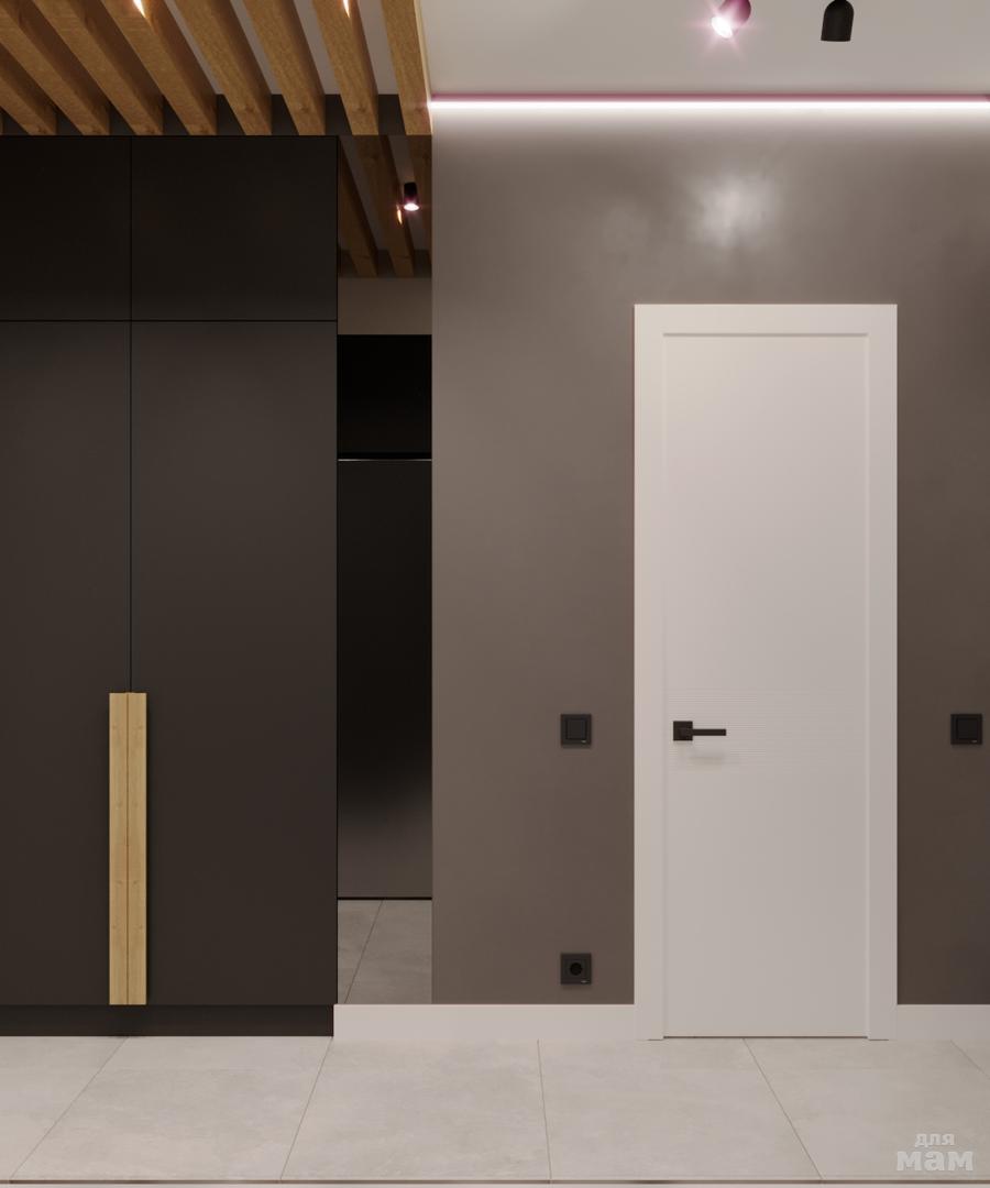 Приветствую вас! У проекта однокомнатной квартиры будут минимальные правки. Показываю вам первый вариант) Лоджию присоединили без согласования. При продаже стену вознесут заново. По плану застройщика справа и слева от входа расположены ванная и туалет. По пожеланию заказчика справа разместили общий санузел,слева будет кладовая.