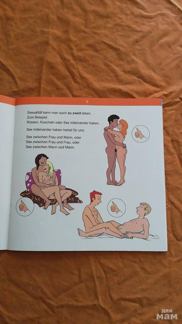Эти картинки прислали из Швейцарии, кантон Цюрих. Это учебное пособие для шестого класса школы, называется «Твоя сексуальность - твоё право». Современная западная образовательная доктрина, в такой сызмальства повариться, к совершеннолетию в башке уже гарантированно бардак будет, туда потом любую дичь уже вложить можно.