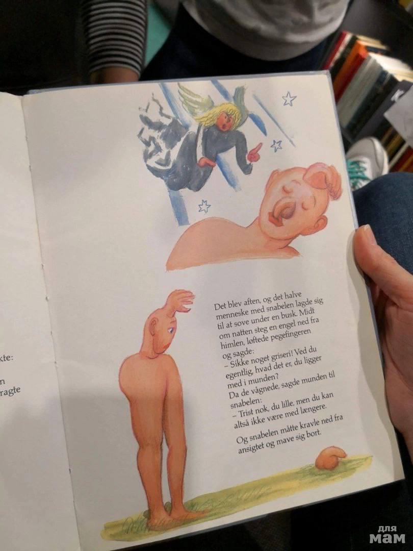А это детская книжка из Дании... портал в ад - реально. Детская книжка про получеловека, который ходил по миру, а потом найденный на дороге хобот стал носом и попал в рот.