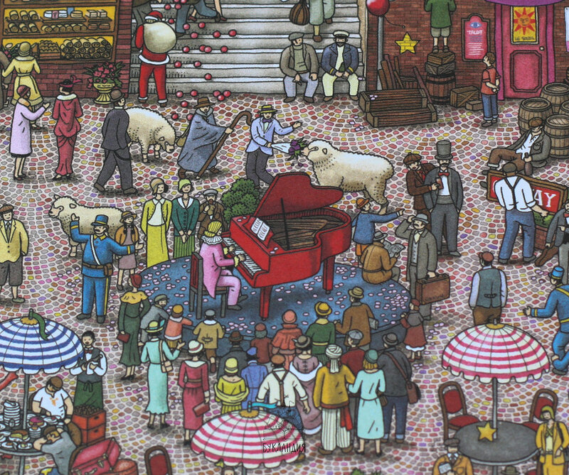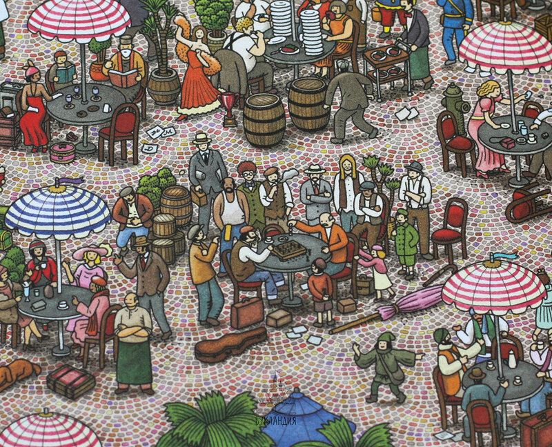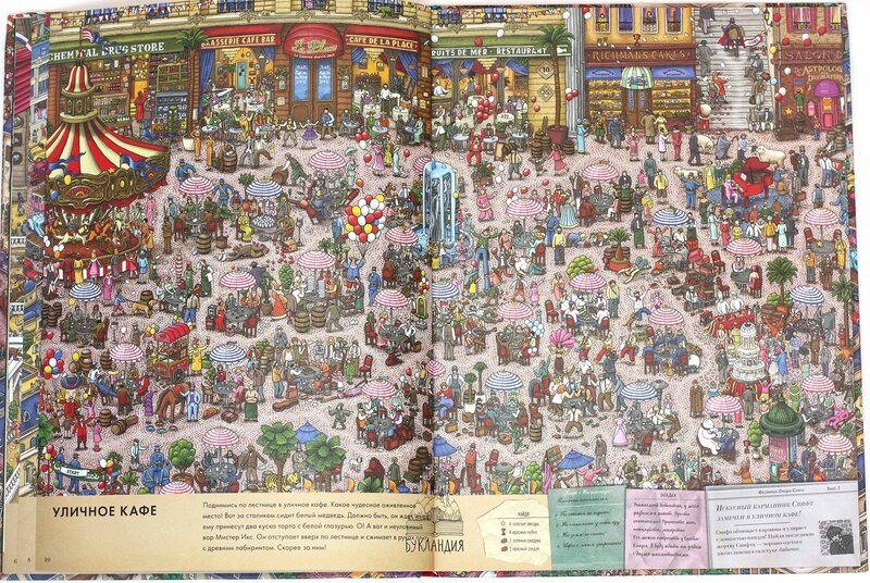 Книга большого формата, с плотными офсетными страницами и яркими иллюстрациями с мельчайшими деталями. А нарисовал эти запутанные лабиринты японский художник Хиро Камигаки.