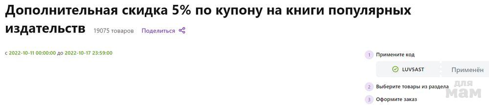 Дополнительная скидка 5% по купону на книги популярных издательств https://vk.cc/chmamS