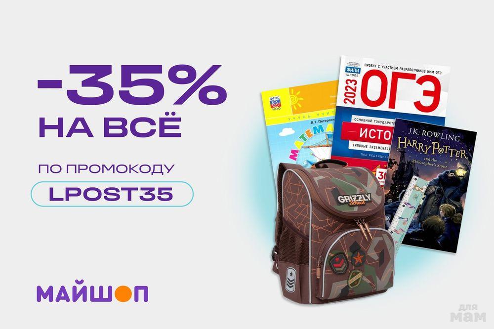 Книги, учебники, канцтовары, товары для хобби и творчества, игрушки – все это вы можете купить со скидкой -35% до 31.10.2022 в интернет-магазине «Майшоп»: https://vk.cc/8LObWB