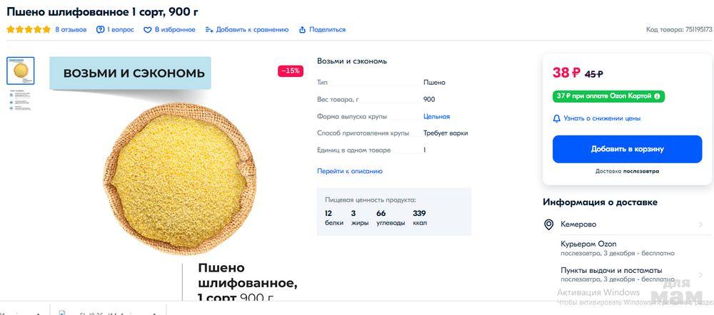 Пшено шлифованное 1 сорт, 900 г https://vk.cc/cjeeHV