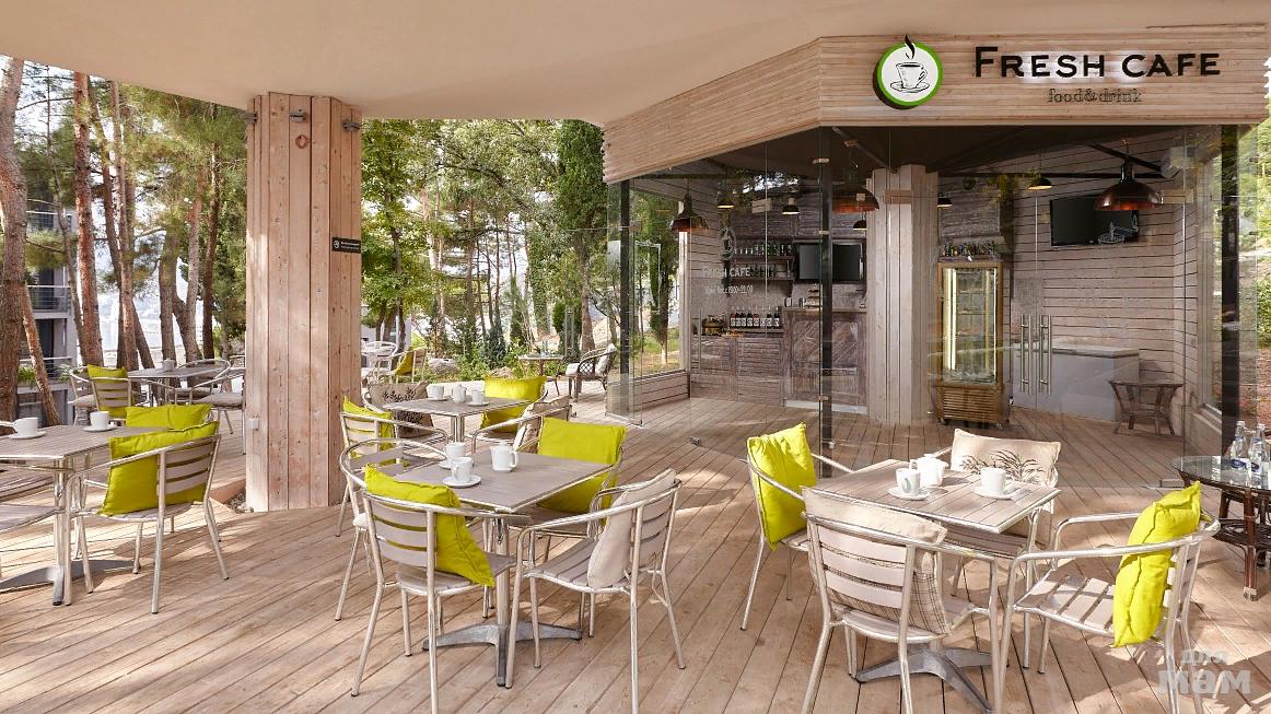 Помимо основного ресторана на территории отеля, в том числе на открытом воздухе и на берегу моря, работает целая сеть ресторанов и кафе (более 20) на любой вкус: бар у бассейна: Gazebo (суши, европейская кухня), спорт-бар «Свисток» (английский паб), ресторан «Мамины пельмешки» (русская и украинская кухня), «Тюбетейка» (восточная кухня), лобби-бар и многое другое!