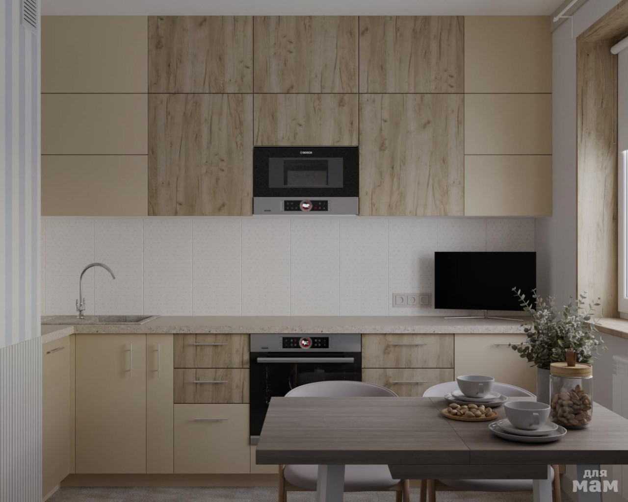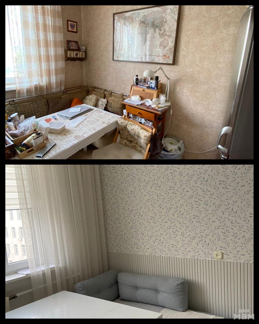 Всех приветствую! Сегодня покажу реализацию проекта кухни. Здесь был выполнен косметический ремонт. Поклеили новые обои, перекрасили дверь, установили новые фасады. Не куплены только новые стол и стулья. Фотографии до/после и визуализация.