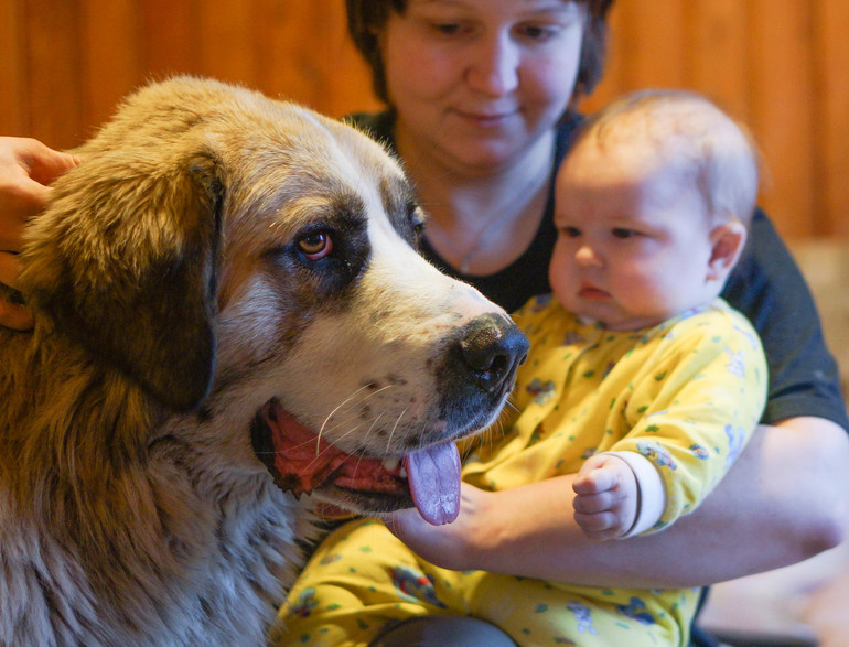 Например, сторожевик Гранд, здоровый злющий кобель, сразу настолько привязался к ребенку своих хозяев, что буквально не отходил от него ни днем, ни ночью, охранял на прогулках, подсовывал морду, когда малыш плакал и т.д.