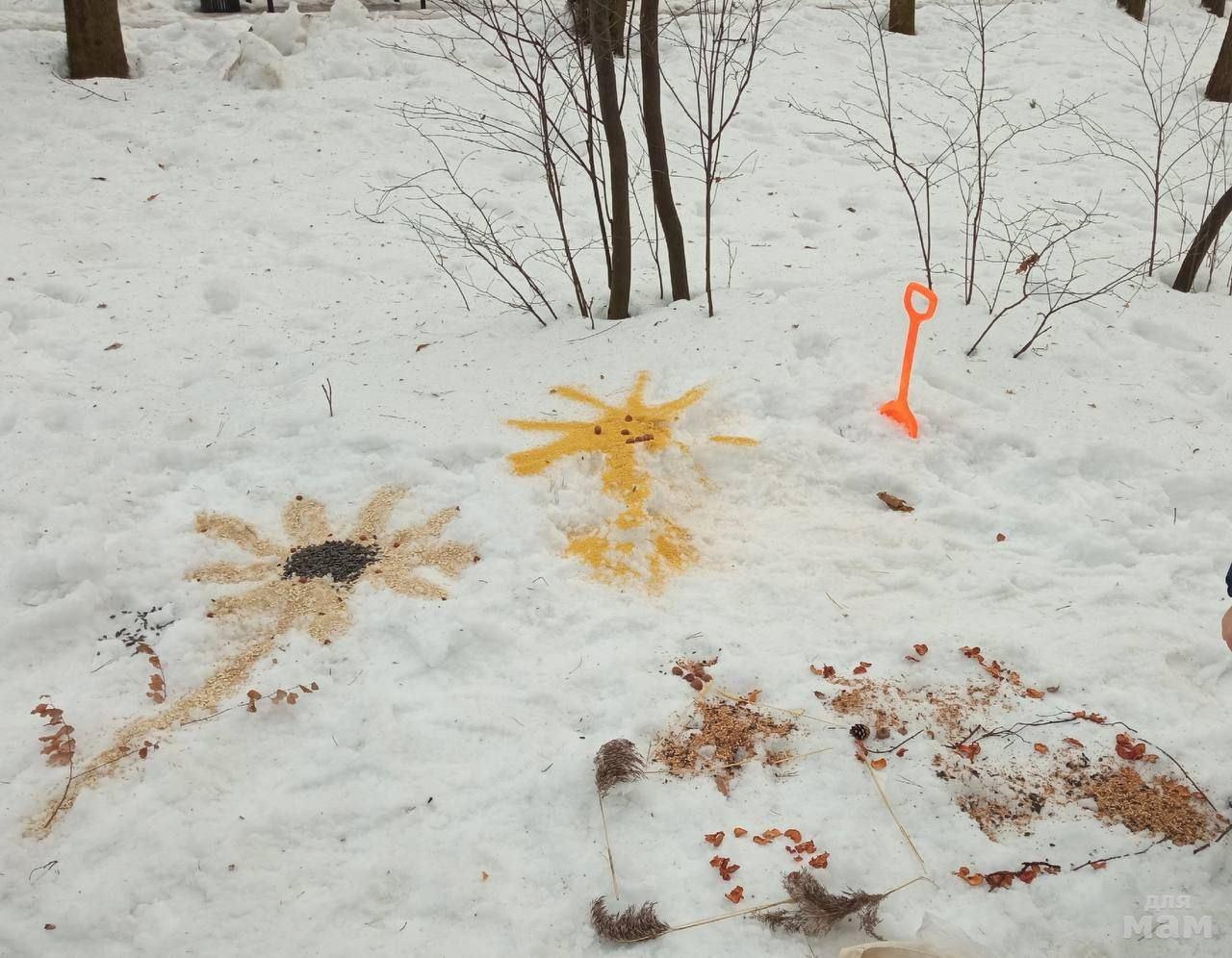 Вот такая красота на снегу. Кушайте на здоровье, наши братья меньшие.