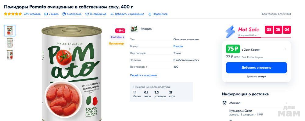 Помидоры Pomato очищенные в собственном соку, 400 г https://vk.cc/clG4xj