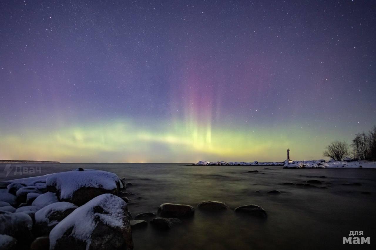 На днях над Ладожским озером явилось настоящее северное сияние.