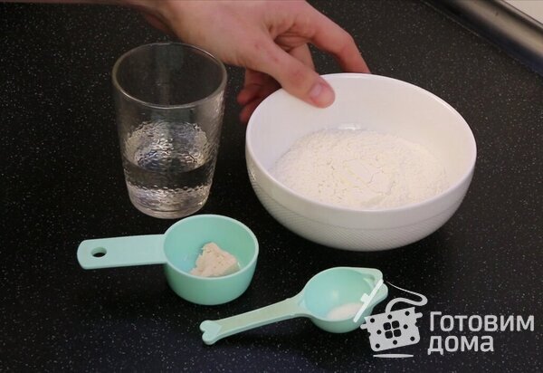 В воде растворяю дрожжи. Муку соединяю с солью. Все смешиваю и замешиваю тесто насадкой "весло" 3 минуты на минимальной скорости, затем 5 минут на средней.