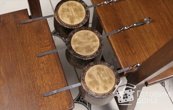 Остыжать их нужно вверх дном. Прокалываю шпажкой (шампурами:)) переворачиваю и закрепляю на чем-то подходящем.
