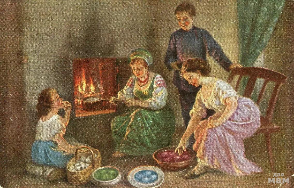 Самая главная из традиций – это приготовление пасхального кулича и покраска яиц. Тесто нужно было ставить в четверг утром. К выпечке приступали только вечером – после молитвы. Верили, что от качества кулича зависит, какой будет год. Если он пышный, то это к счастью, а если черствый – к бедности и болезням.
