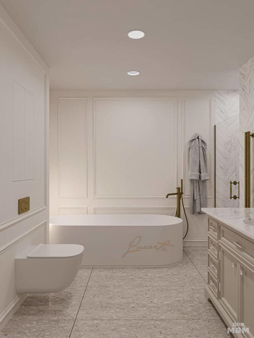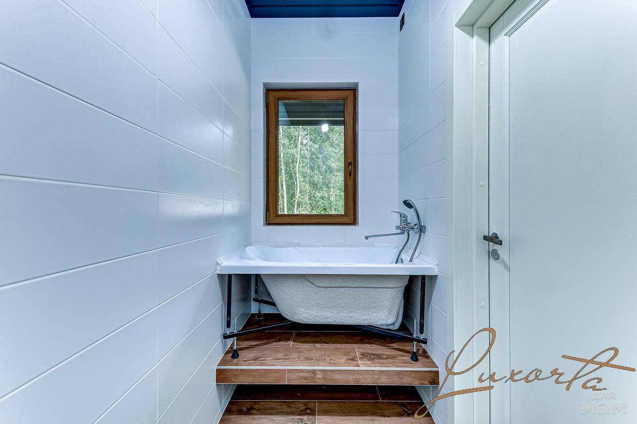 Здесь можно поставить стиральную машину, сушильную машину. Это очень удобно, потому что основную часть времени мы проводим в зоне кухни-гостиной.Вы заходите сразу в туалет, чтобы не бегать по квартире. А еще это решение удобно для гостей, а не в ваш личный санузел с интимными вещами.