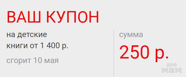 КУПОН НА 250 Р. до 10.05 на детские книги от 1400 р. https://vk.cc/cnTS2R