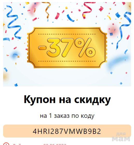 КУПОН НА СКИДКУ 37% на 1 заказ по коду 4HRI287VMWB9B2