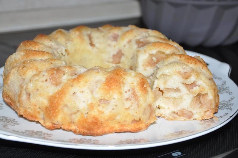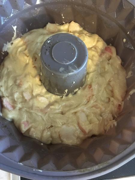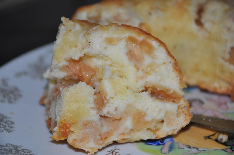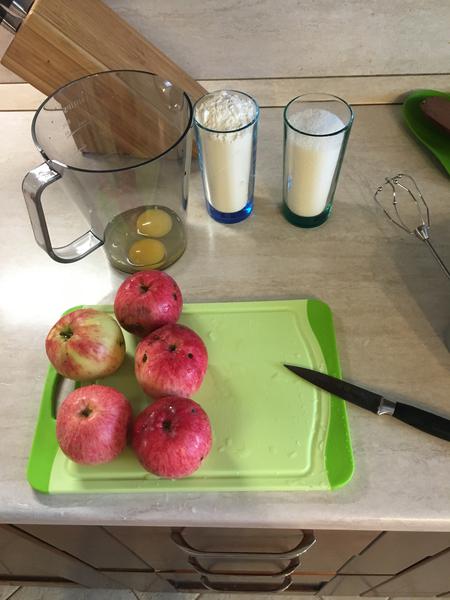 Тесто я делаю не жидкое, а густое, потом в него добавляю яблоки (очищенные от шкурки и порезанные) и перемешиваю, так, что каждая долька получается как в кляре.