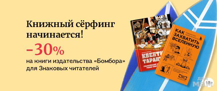 13 июня с 15:00 до 16:00 в интернет-магазине действует скидка 30% на книги издательства «Бомбора». Только для Знаковых читателей