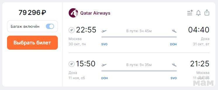 Первое - старт из Дохи. Сейчас у авиакомпании Qatar Airways есть специальный тариф и билет Москва-Доха-Москва прямо под даты круиза стоит 47 тыс руб с человека. С багажом и питанием.