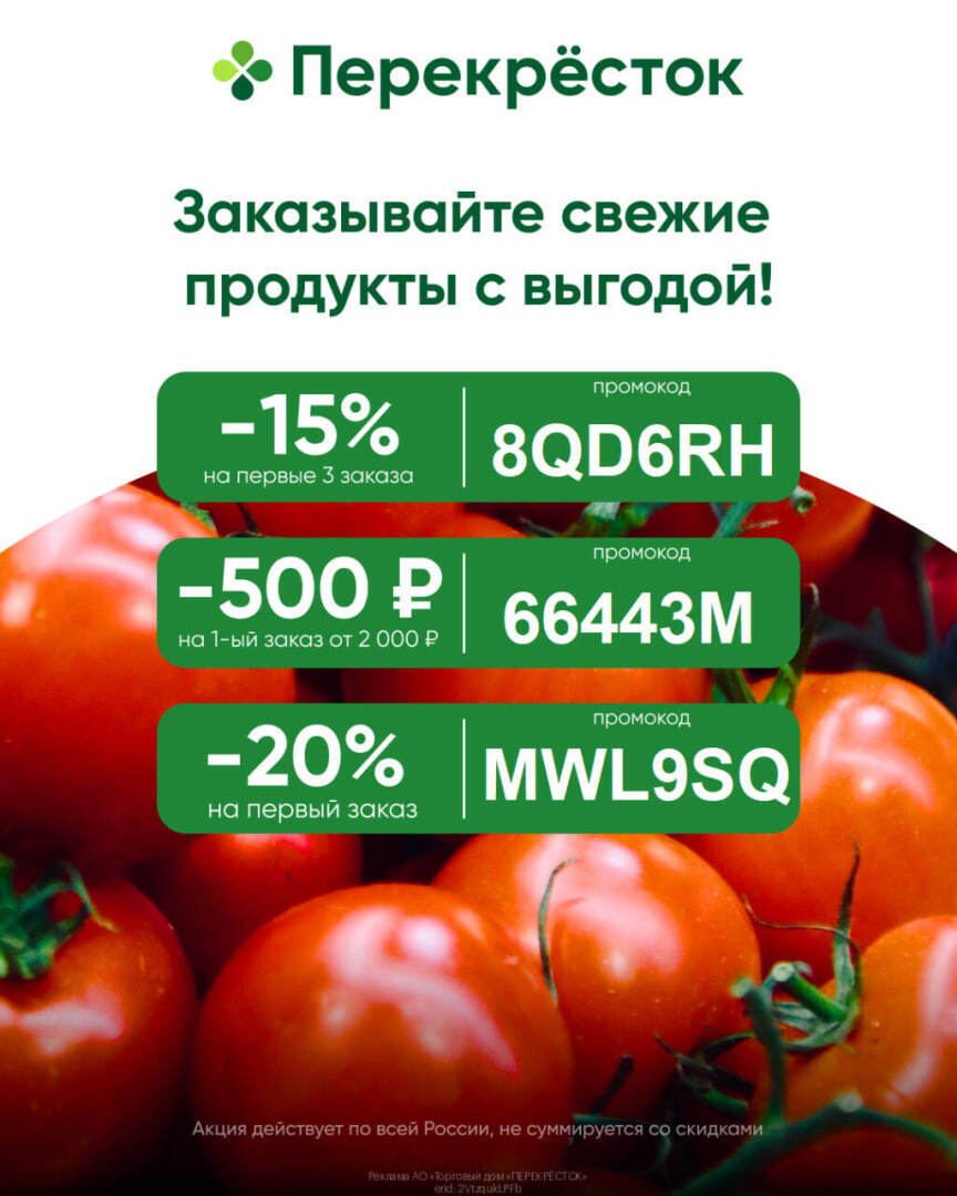 На сайте или в мобильном приложении Перекрестка представлены три промокода, каждый из которых предлагает свои преимущества:
