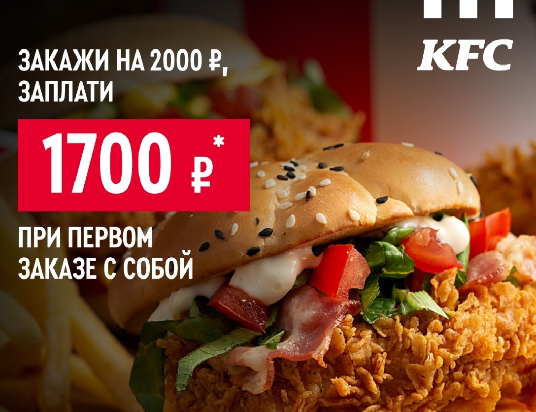 - Несмотря на то, что это предложение действительно заманчиво, есть несколько условий, которые важно учесть. Во-первых, скидка действует только на первый заказ с собой. Это значит, что если вы уже делали заказы на самовывоз в KFC, то вы не сможете воспользоваться этим предложением.