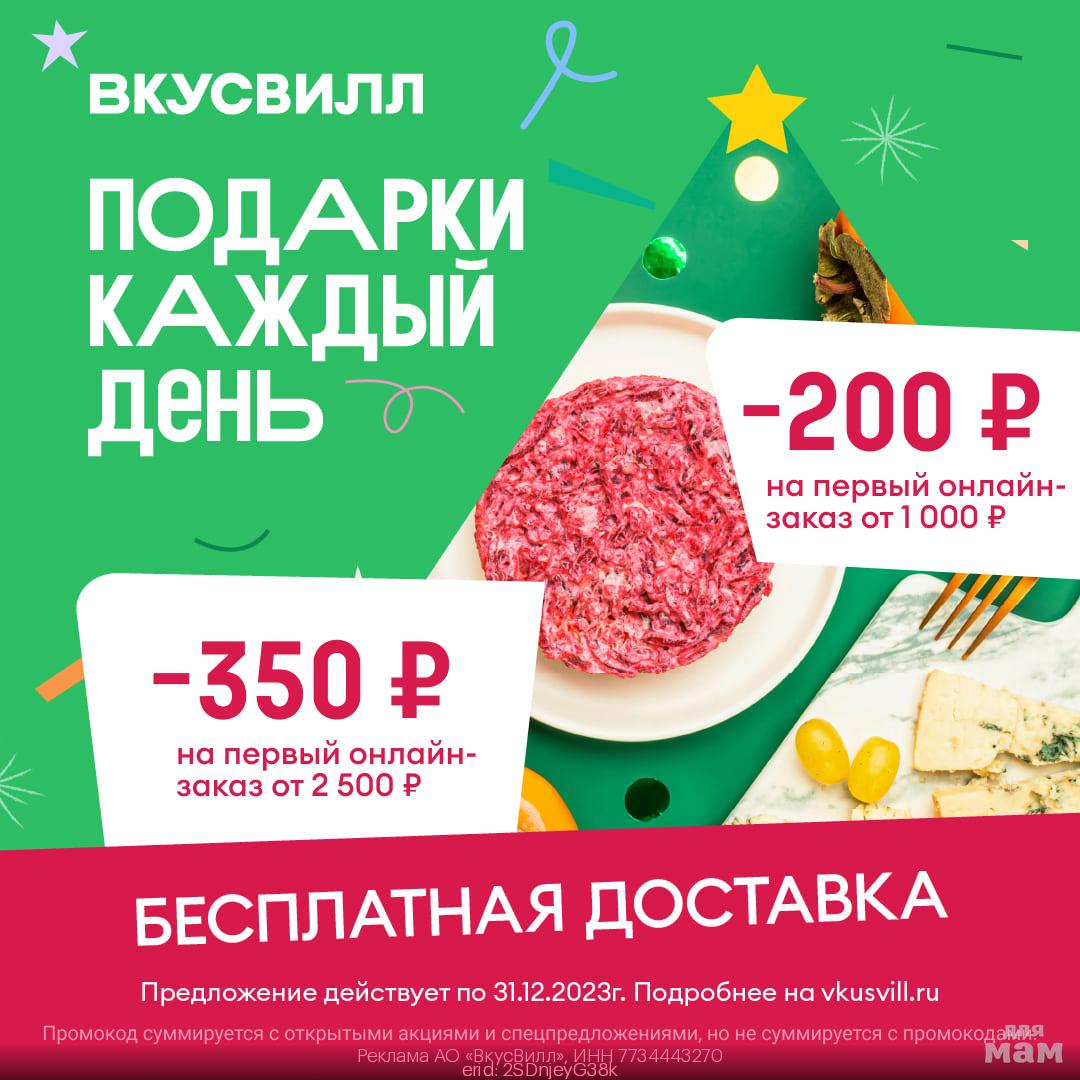 Не упустите свой шанс начать экономить уже сегодня. Переходите по ссылке, используйте промокоды и погрузитесь в мир выгодных и вкусных покупок во ВКУСВИЛЛ. Пусть ваш первый заказ станет началом долгой дружбы с магазином, где заботятся о вас и вашем бюджете.