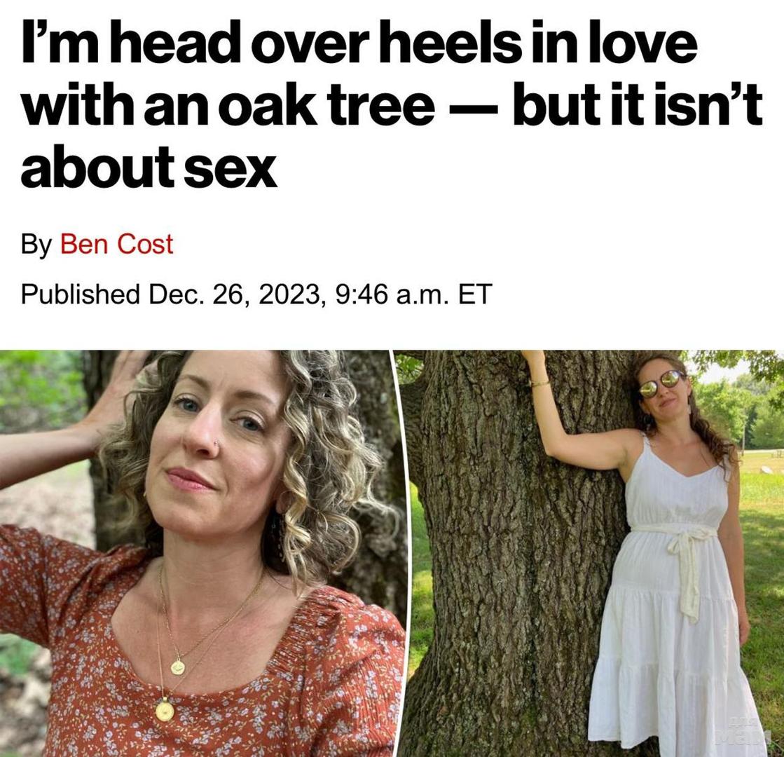 С деревом она познакомилась в 2020 году, а в 2021 у неё начали развиваться сексуальные чувства к нему. По словам женщины, дуб наполняет её «эротической энергией» и «даёт ощутить себя крошечной под опекой чего-то настолько твёрдого».