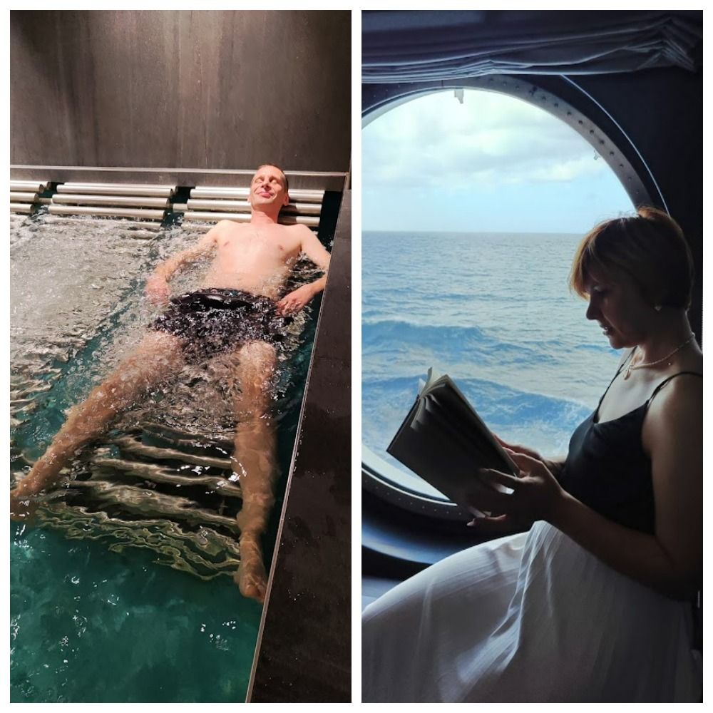 В первый день я одна сходила на массаж, корабль немного качало и в совокупности это дало нереальный эффект, я прям отлетела. В другой день мы вместе с мужем и друзьями провели час в СПА зоне лайнера: разные бани, джакузи-кайфузи.