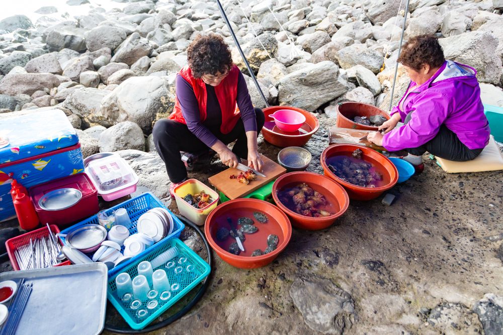 Ловят их уникальные женщины, которые попали в книгу рекордов Гиннеса. Хэнё (дословно женщина моря) — в Корее профессиональная ныряльщица, зарабатывающая на жизнь добычей моллюсков и других деликатесов с морского дна.