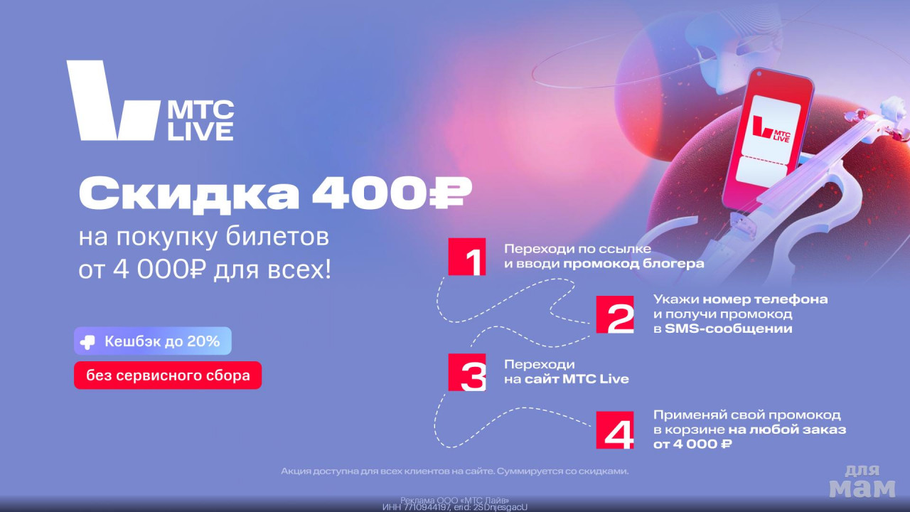 МТС Live: Эксклюзивная скидка 400 ₽ + кешбэк до 20%! 🎟️🔥