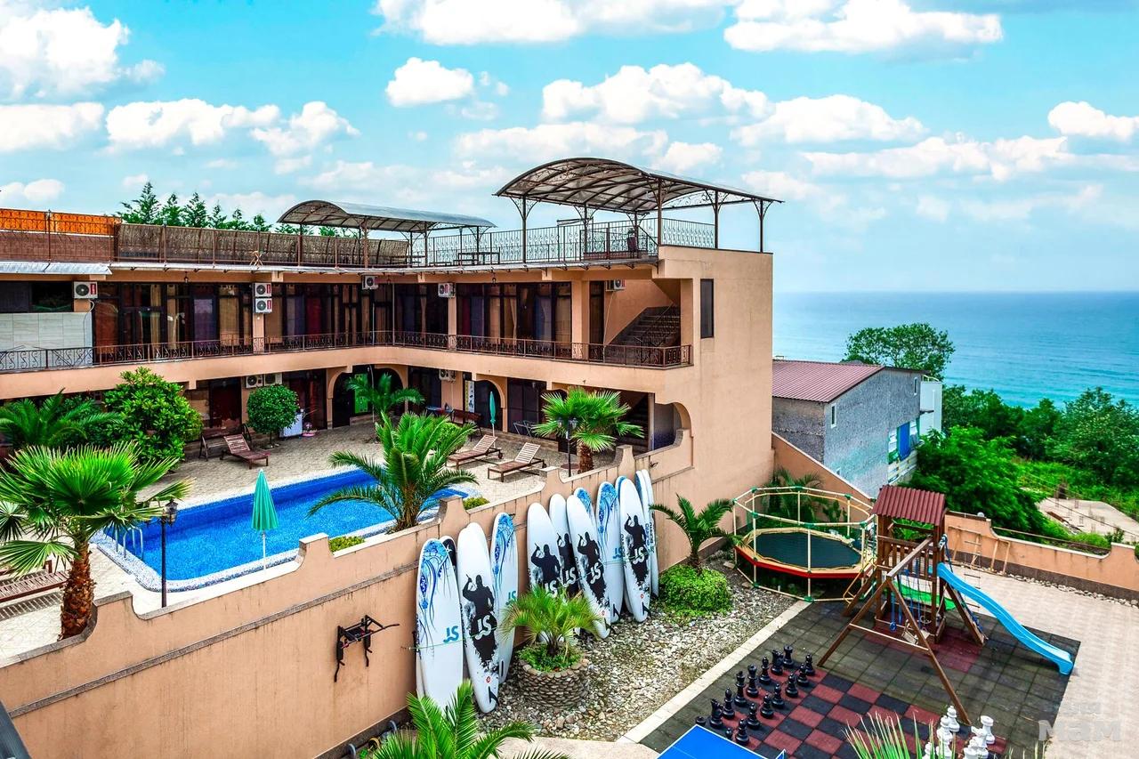 ОГРОМНЫЕ ПЛЮСЫ ОТЕЛЯ ЛЕТО - очень очень тихое тупиковое место у леса, своя бесплатная большая парковка прям под окнами отеля (открытая и под навесом), нет шума от машин и от людей, нет рядом дорог и трасс, нет громкой музыки и шумных дискотек до глубокой ночи, режим тишины с 22-00, свой мощнейший генератор у отеля (когда нет света, воды и инета во всем Сочи, а это случается в сезон очень часто, в отеле всегда есть свет, вода и инет). Шикарнейшие виды на море (очень оздоравливает и омолаживает без таблеток) - можно смотреть часами. При наводнениях в Сочи этот отель никогда не затапливает, тк он стоит на возвышенности и все сливается вниз. Нет жары при аномальной жаре в Сочи, тк рядом горы и в Лето некий свой климат. Пустые и тихие (почти дикие) чистые пляжи с очень небольшим количеством людей, но при этом есть хороший заход в море (мелкая галька), зонтики, шезлонги, сапы, катамараны - все по очень дешевой цене. Нет шумных зазывал, катеров, гудящих моторов и тп. Шум моря, ветра и звуки природы - именно это и есть на пляже. Отель в 3-5 минутах от пляжа. На пляже много ракушек. Уютная атмосфера, очень приятный персонал, безопасное место. Впереди отеля - море, сбоку отеля - большой лесной массив, поэтому воздух наисвежайший.
