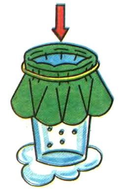 3. Накрой стакан платком, закрепив его аптечной резинкой.