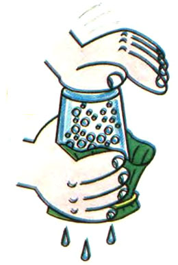 4. Продави пальцем середину платка так, чтобы он на 2-3 сантиметра погрузился в воду.