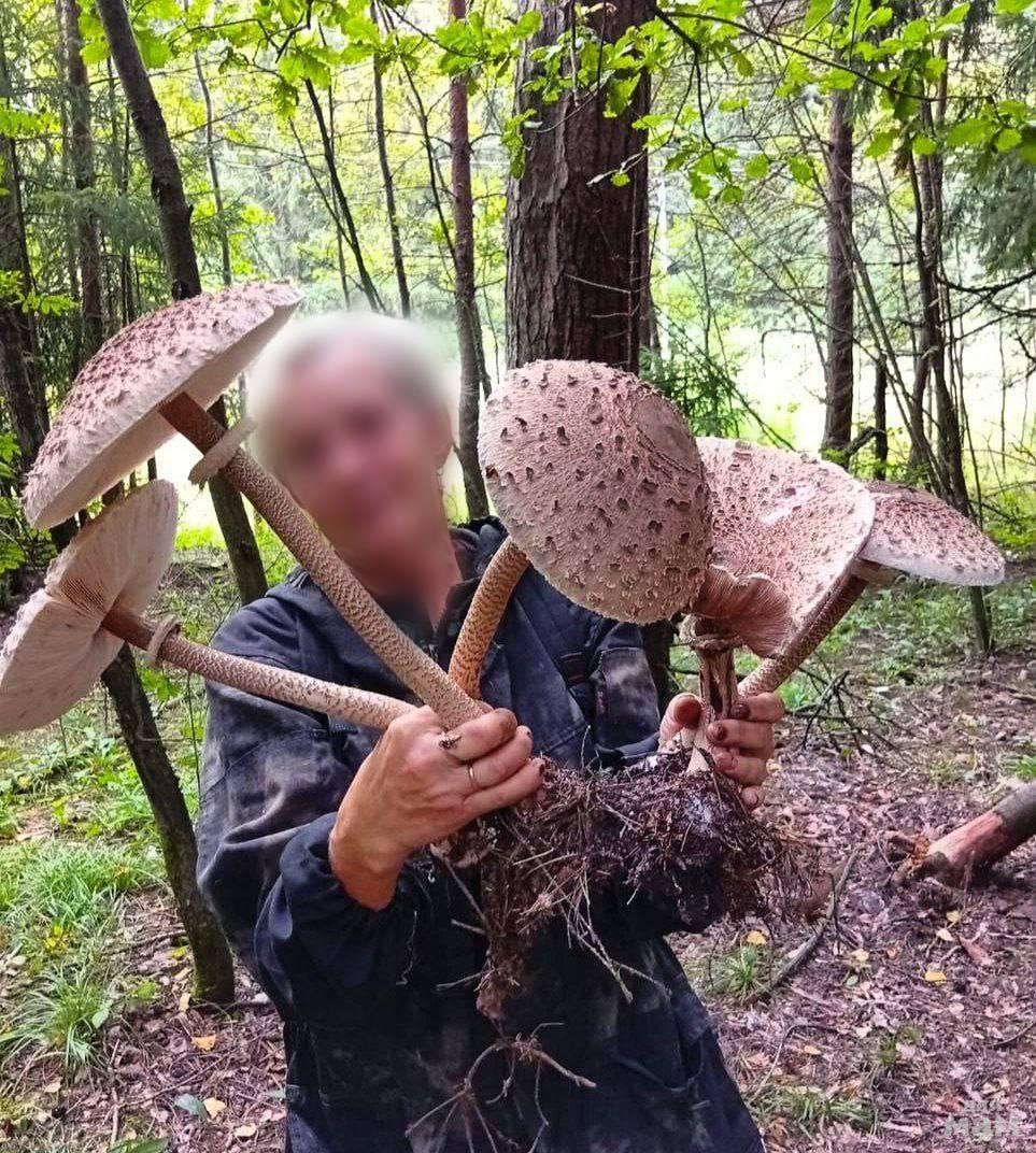 🍄🟫В Мытищинском районе активно собирают грибы-зонтики корзинами.