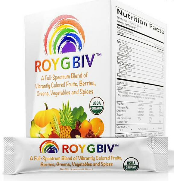 ROY G BIV это концентрированный порошковый суперпродукт высшего качества, содержащий всю гамму разноцветных фруктов, ягод, зелени, овощей и специй.