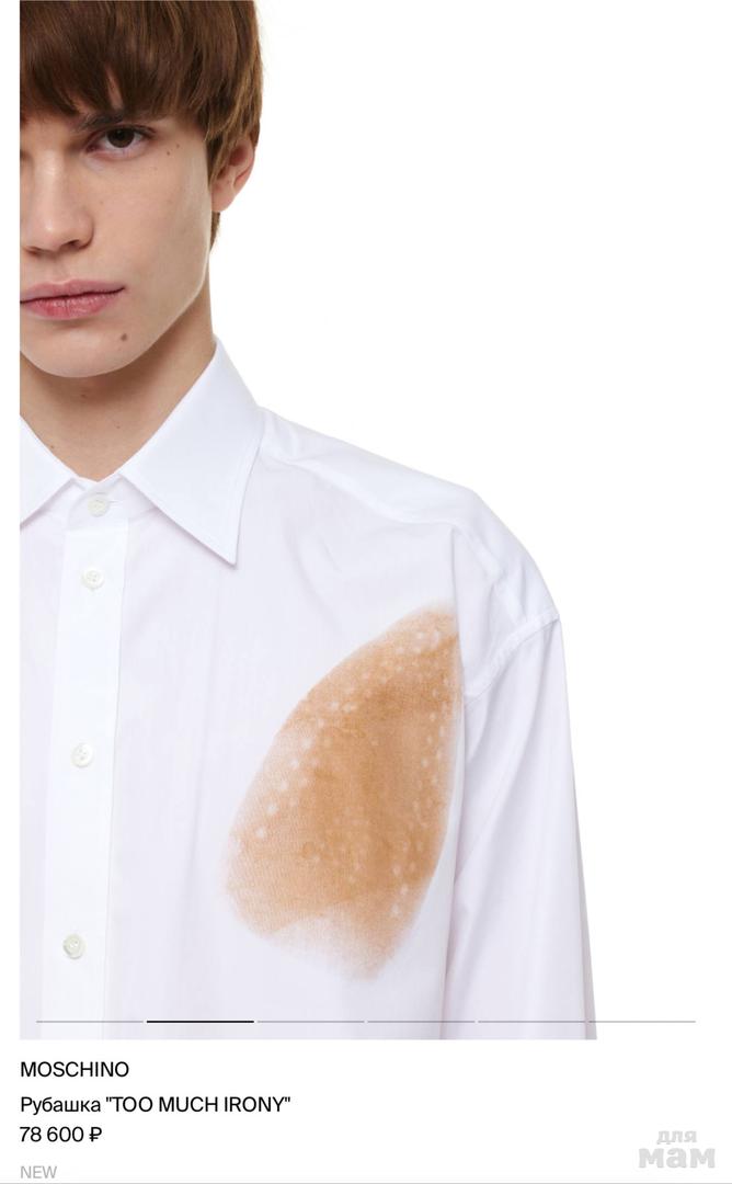 Школьные рубашки с пятном от утюга за 78.000₽ завезли в бутики. Необычный шедевр для модников представил бренд Moschino. Так что девчули, если случайно так прожигаем свои вещички своим утюгом - не рыдаем и не выбрасываем. А носим и находимся в тренде)))))