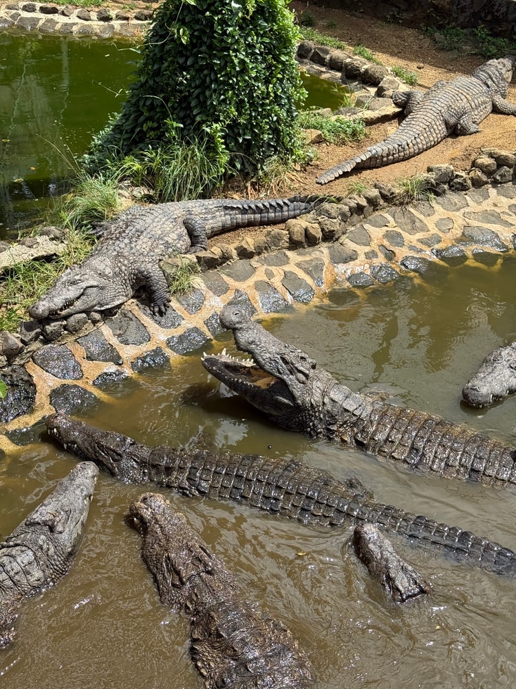 Следующая остановка - парк Ла Ванилла. Здесь смотрим кормление крокодилов (а потом желающие могут попробовать крокодила в кафе), гладим черепах и умиляемся над лемурами)