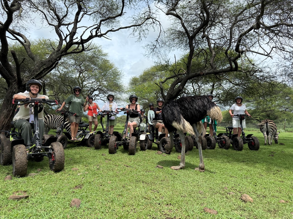 Следующий день - один из самых насыщенных по впечатлениям - посещение парка Казела. Это место, где мы взрослые можем выгулять своего внутреннего ребенка и получить удовольствие о контакта с животным миром;) Обнимашки с зебрами - мое любимое)) На территории Казелы есть так называемая зона сафари - большая территория, где животные гуляют на свободе. Базово по этой территории катают на автобусе, выходить из которого нельзя. Но есть возможность дополнительно купить билеты на эко-райдер или квадрацикл и покататься с сопровождающим по территории парка самостоятельно. Стоит это примерно 70 евро, продолжительность 1,5 часа, кайф точно получите. Управлять эко-райдером не сложно, управление на руле. И только на эко-райдере можно погладить и покормить зебру или близко увидеть жирафов)