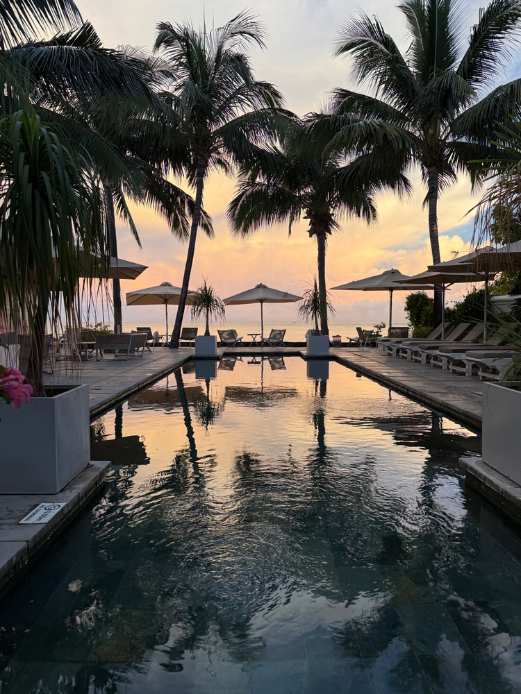 Отели на Маврикии в сезон пользуются популярностью, поэтому я бронирую либо сильно заранее (за 4-6 мес.) и иногда приходится менять. В последнем туре жили недалеко от Блэк-Ривер в маленьком камерном отеле на 23 номера прямо на берегу океана. Пляж здесь окружен рифом, поэтому мелко и с вкраплениями кораллов, но завтракать тут с видом на океан было чудесно;)