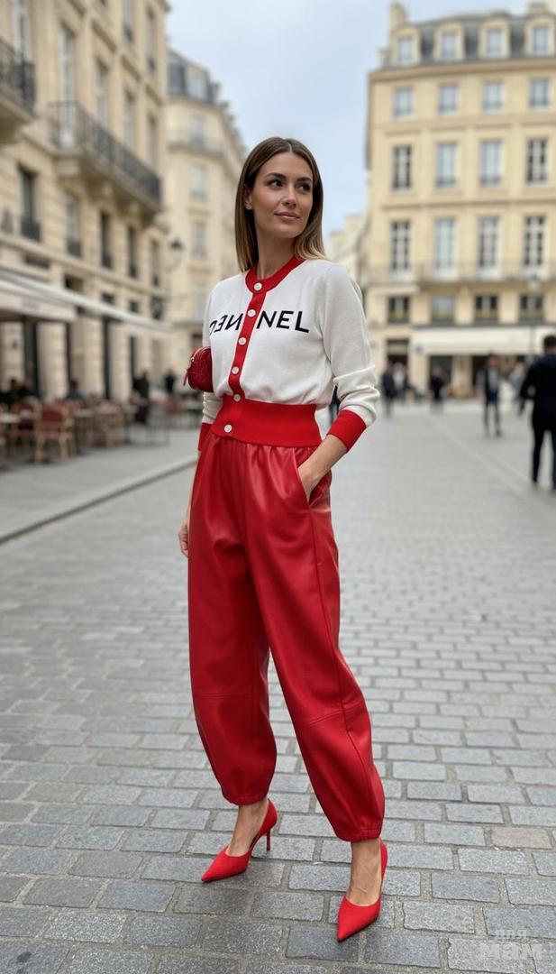 Девушкам с короткими ногами и длинным торсом — такие брюки могут визуально укоротить ноги. Но ситуацию спасает высокая посадка и каблуки.