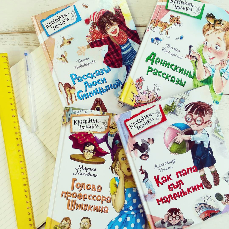 Серия «Крестики-нолики» - это серия книг о школьниках, веселых и озорных, и их приключениях, неожиданных, головоломных, прямо как игра в крестики-нолики. Герои серии- самые обычные школьники. Точно такая же бесшабашная Люся Синицына наверняка сидит за одной партой вон с той девчонкой в смешных наушниках, озорной Дениска Кораблёв - лучший друг вашего сына, а ваша дочка, не выпускающая из рук смартфон, переписывается сейчас с весёлой и изобретательной Леной Шишкиной. Книги В. Драгунского, М. Москвиной, А. Раскина, И. Пивоваровой давно стали детской классикой. А читать о приключениях их персонажей, неутомимых выдумщиков, озорников и мечтателей, по-прежнему интересно и смешно каждому школьнику!