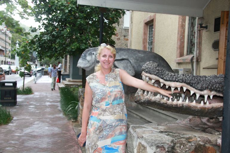 Дальше мы дошли до зоологического музей Сейшел. Гид сказал, что внутри особо смотреть нечего, два главных экспоната находятся у входа) Крокодилов на Сейшелах сейчас конечно нет, их давно съели первые поселенцы на острове. Но когда-то они здесь были)