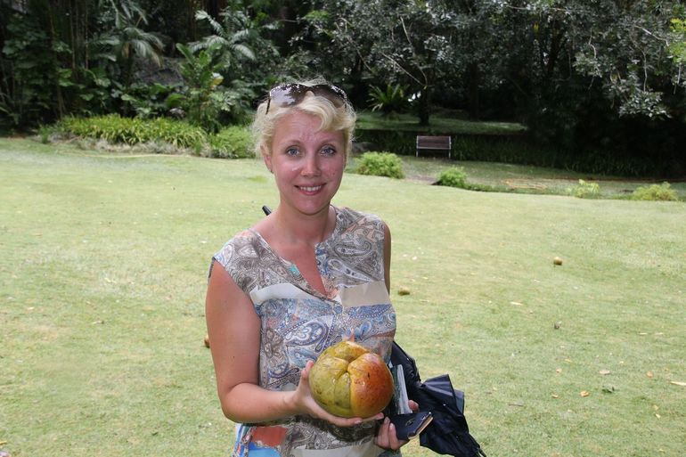 После Виктории мы поехали в Сейшельский Ботанический Сад. Вход платный, 100 рупий/чел. Сад не очень большой, но приятный, ухоженный. А с рассказом нашего гида о местных растениях прогулка была очень интересной! Здесь растут все 6 видов эндемических пальм Сейшельских островов. Показал нам и дал понюхать плоды винной пальмы, действительно пахнут брагой))